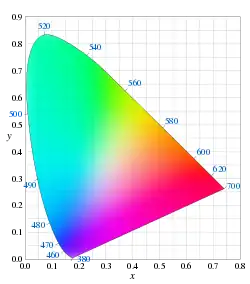 | 18 | قيم الحفز الثلاثي | الفضاء اللوني سي آي إي 1931 |