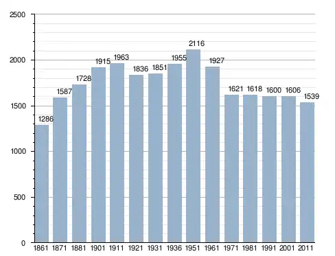 في سنة 1861 بلغ عدد السكان 1٬286 نسمة، وتطور العدد ليصل في سنة 2011 لـ 1٬539 نسمة.
