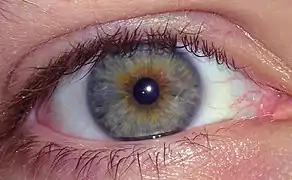 لون العين هو نمط ظاهري متعدد الجينات يحدده عاملان: الصبغة التي في قزحية العين[1][2] ومقدار تشتت الضوء خلال الوسط الموجود فينسيج القزحية.[3]:9