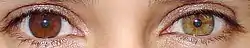 تغاير لون القزحيتين هي حالة تكون فيها كل قزحية لها لون مختلف عن الأخري (تغاير التلون الكامل)، أو قد يكون جزء من قزحية واحدة مختلف عن لون الباقي (تغاير التلون الجزئي القطاعي). وهذا نتيجة للزيادة النسبية أو عدم وجود الصبغة في قزحية أو جزء من القزحية، والتي قد تكون صفة موروثة أو مكتسبة نتيجة لمرض أو إصابة.[91][92][93]