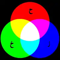 فمثلا، في نظام الألوان الطرحية تشكل اللون الأخضر من تمازج اللون الأصفر مع الأزرق، بينما في نظام الألوان الجمعية يعطي تمازج اللون الأحمر والأخضر اللون الأصفر، أي: