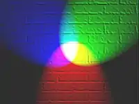 ولا يوجد طريقة بسيطة لإنتاج اللون الأخضر. ويجب الإشارة إلى أن الألوان الجمعية هي نتيجة لطريقة التقاط العين للون، وليست خاصية للضوء. ويوجد فرق كبير بين الضوء الأصفر، ذو طول موجة يقارب 580 نانومتر، وبين مزيج من الضوء الأحمر والأخضر. والعين البشرية، تعامل كلا النوعين بنفس الطريقة، ولا نلاحظ أي فرق (انظر رؤية اللون).