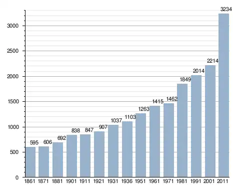 في سنة 1861 بلغ عدد السكان 595 نسمة، وتطور العدد ليصل في سنة 2011 لـ 3٬234 نسمة.