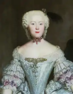 - Genealogie ascendante jusqu'au quatrieme degre inclusivement de tous les Rois et Princes de maisons souveraines de l'Europe actuellement vivans [Genealogy up to the fourth degree inclusive of all the Kings and Princes of sovereign houses of Europe currently living] (باللغة الفرنسية). Bourdeaux: Frederic Guillaume Birnstiel. 1768. صفحة 51. مؤرشف من الأصل في 25 يناير 2020. الوسيط