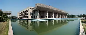 لم يُكتب للو كوربوزييه النجاح على نطاق واسع في كثير من المناطق، كأوروبا وأفريقيا وأمريكا الجنوبية، لكن النجاح الأكبر كان في الهند، وذلك عندما تم كليفه بتصميم عاصمة جديدة لولاية البنجاب، وذلك بعد انفصال الباكستان عن الهند، اُطلق عليها اسم شانديغار.[50][51] ويُعد هذا المشروع أضخم إنجازات لو كوربوزييه التي حقق فيها الكثير من أفكاره التصميمية التي كان قد طورها طوال فترة ممارسته للمهنة منذ البدايات. قام لو كوربوزييه بتصميم مدينة كاملة بما يشمل تخطيطها العام ومبانيها السكنية والعامة التي كان من أبرزها تجمع مباني السلطات الثلاث: التشريعية، والتنفيذية، والقضائية. وقد جاءت علاقة موقع مباني السلطات الحكومية الثلاث ضمن مخطط المدينة بمثابة الرأس إلى الجسد في استعارة مباشرة تعبر عن علاقة السلطة بالشعب. وتم توزيع المباني ضمن ذلك الموقع في استقلالية تامة لكل واحدة عن الأخرى بما يوحي أيضا بالإستقلالية التي تتمتع بها كل سلطة من هذه السلطات عن الأخريات، فجاء مبنى المحكمة العليا في جهة، ومبنى البرلمان المحلي في جهة أخرى وإلى جانبه مبنى السكرتاريا. وكان بين الإثنين ساحة احتفالية ضخمة.[52]
