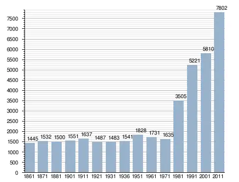 في سنة 1861 بلغ عدد السكان 1٬445 نسمة، وتطور العدد ليصل في سنة 2011 لـ 7٬802 نسمة.