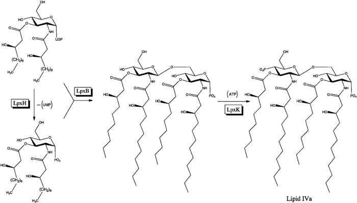 وقد تم اكتشاف المسار الحيوي لتركيب ليبيد A في بكتريا الإشريكية القولونية من قبل عمل الباحث Christian R. H. Raetz منذ 32 عاما. وكذلك اهتم علماء آخرون في دراسة تركيب وتأثير ليبيد A على الخلايا حقيقية النواة، حيث بدء من قبل مجموعات من أوتو ويستفال، كريس Galanos ، إرنست T. Rietschel و هاجيمي تاكاهاشي منذ 1960s (Gmeiner, Luederitz, Westphal. Eur J Biochem 1969)(Kamio&Takahashi J Biochem 1971)(Luederitz, Galanos et al., J Infect Dis 1973). .