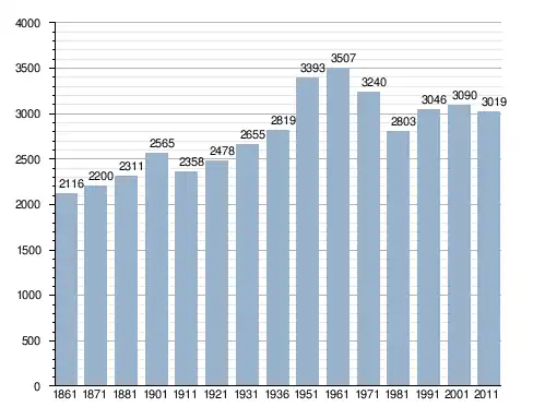 في سنة 1861 بلغ عدد السكان 2٬116 نسمة، وتطور العدد ليصل في سنة 2011 لـ 3٬019 نسمة.