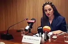 - Footage of Lydia Canaan delivering her speech "Hostage to Injustice". يوتيوب. September 2, 2016. Retrieved August 18, 2017. نسخة محفوظة 9 يناير 2020 على موقع واي باك مشين.