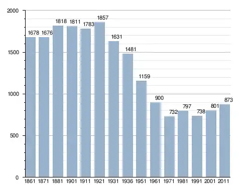 في سنة 1861 بلغ عدد السكان 1٬678 نسمة، وتطور العدد ليصل في سنة 2011 لـ 873 نسمة.