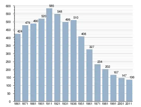 في سنة 1861 بلغ عدد السكان 424 نسمة، وتطور العدد ليصل في سنة 2011 لـ 136 نسمة.