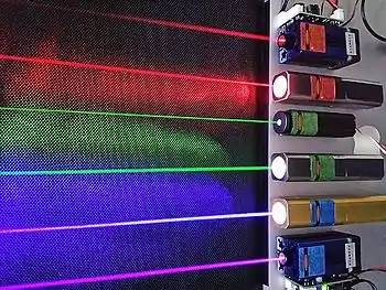 الليزر أو تضخيم الضوء بالانبعاث المحفز للإشعاع (بالإنجليزية: Light Amplification by Stimulated Emission of Radiation اختصاراً LASER) هو إشعاع كهرومغناطيسي تكون فوتوناته مساوية في التردد ومتطابقة الطور الموجي حيث تتداخل تداخلا بناءً بين موجاتها لتتحول إلى نبضة ضوئية ذات طاقة عالية وشديدة التماسك زمانيا ومكانيا ذات زاوية انفراج صغيرة جدا وهو مالم يمكن تحقيقه باستخدام تقنيات أخرى غير تحفيز الإشعاع.[1][2][3]