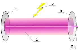 - (2) طاقة كهربائية لتحفيز الوسط الفعال على إصدار الموجات الضوئية