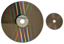 قرص ليزرديسك يسار الصورة بجانب قرص دي في دي على يمين الصورة