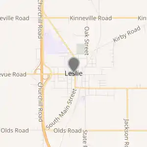 - "صفحة ليزلي (ميشيغان) في GeoNames ID". GeoNames ID. اطلع عليه بتاريخ 6 مارس 2021. الوسيط