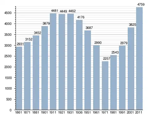 في سنة 1861 بلغ عدد السكان 2٬931 نسمة، وتطور العدد ليصل في سنة 2011 لـ 4٬759 نسمة.