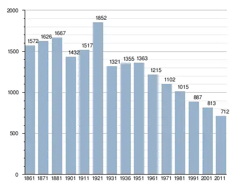 في سنة 1861 بلغ عدد السكان 1٬572 نسمة، وتطور العدد ليصل في سنة 2011 لـ 712 نسمة.