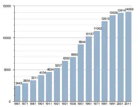 في سنة 1861 بلغ عدد السكان 2٬443 نسمة، وتطور العدد ليصل في سنة 2011 لـ 14٬069 نسمة.