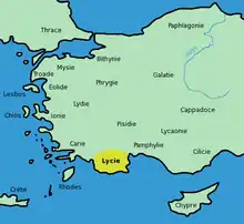 ليقيا[1][2] أو ليكيا (باللاتينية: Lycia) اسم قديم لإقليم يقع جنوب غرب آسيا الصغرى (تركيا حاليا)، يحتل الساحل بين كاريا وبامفيليا، ويمتد داخل البلاد حتى حافة جبال طوروس. وبهذا فالمنطقة معينة بشكل شبه جزيرة تسلط جنوبا من الكتل الجبلية العظيمة في الداخل.