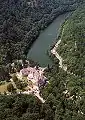 لقطة تجمع المبنى مع البحيرة