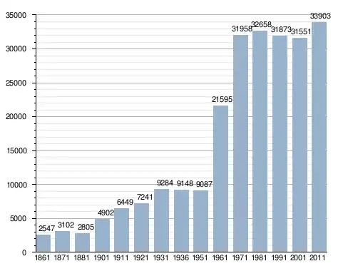 في سنة 1861 بلغ عدد السكان 2٬547 نسمة، وتطور العدد ليصل في سنة 2011 لـ 33٬903 نسمة.