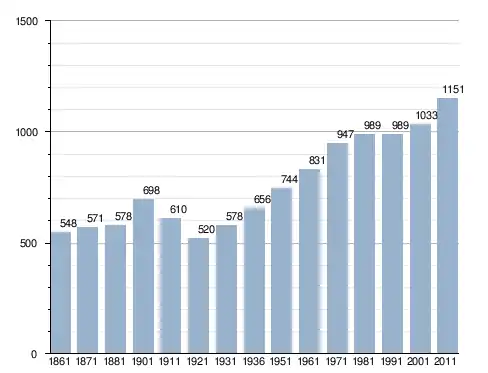 في سنة 1861 بلغ عدد السكان 548 نسمة، وتطور العدد ليصل في سنة 2011 لـ 1٬151 نسمة.