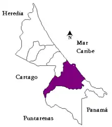 يمتد الكانتون على طول الساحل الكاريبي من منبع نهر تورو في الشمال وإلى نهر توبا في الجنوب. في الشرق توجد كورديجا دي تيلاران و إلى الجنوب الغربي حيث يصل إلى قمة سيرّو شيريبو. أعلى نقطة في كوستاريكا.