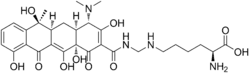 | (2S)-6-[[[(Z)-[(4S,4aS,5aS,6S,12aS) -4-(dimethylamino)-6,10,11,12a-tetrahydroxy-6-methyl-1,3,12-trioxo-4,4a,5,5a-tetrahydrotetracen-2-ylidene]-hydroxymethyl]amino]methylamino]-2-aminohexanoic acid | |
