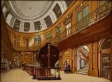 رسم بريشة أمين المتحف وايبراند هندريكس في 1800 للحجرة البيضاوية الشهيرة في متحف تيلرز، وتظهر elektriseermachine of Martin van Marum