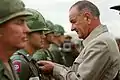 ليندون جونسون خلال زيارته لفيتنام الجنوبية وتسليم الميدالية للجنود الأمريكيين.