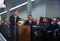 ليندون جونسون يلقي الكلمة عام 1968م .