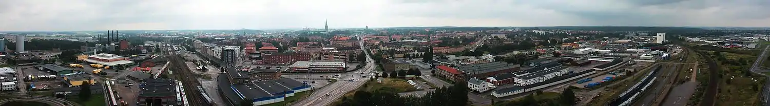 صورة بانورامية لمدينة لينشوبينغ يظهر فيها أعلى مبنى بالمدينة