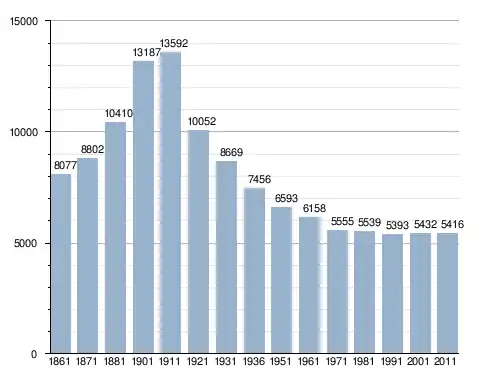 في سنة 1861 بلغ عدد السكان 8٬077 نسمة، وتطور العدد ليصل في سنة 2011 لـ 5٬416 نسمة.