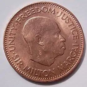 في عام 1964، ظهرت 1 و5 و10 و20 سنتًا. وحملوا جميعًا صورة أول رئيس وزراء لسيراليون، ميلتون مارجاي. وفي عام 1972، تم ظهرت 50 سنتًا من العملات المعدنية التي تحمل صورة الرئيس الأول سياكا ستيفنز.