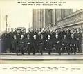 | الصف الخلفي (من اليسار إلى اليمين): أوغوست بيكارد، إيميل هنريوت، بول إهرنفست، إدوارد هرتزن، تيوفيل دو دوندر، إروين شرودنغر، يولس-إيميل فيرشافت، فولفغانغ باولي، فيرنر هايزنبيرغ، رالف فاولر، ليون برويون. |