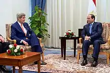 |CitationClass=تم تجاهله (مساعدة); غير مسموح بالترميز المائل أو الغامق في:|ناشر=(مساعدة) - Klapper, Bradley (13 March 2015). "Kerry promotes US investment in Egypt, but brings with him no new military aid". U.S. News. مؤرشف من الأصل في 11 فبراير 2017. اطلع عليه بتاريخ 13 مارس 2015. الوسيط