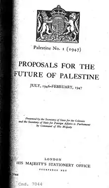 دعت حكومة كليمنت أتلي البريطانية إلى مؤتمر لندن 1946–47، الذي عقد بين سبتمبر 1946 وفبراير 1947، لحل الحكم المستقبلي لفلسطين والتفاوض على إنهاء الانتداب. تم تحديد موعد المؤتمر بناءً على طلب عربي بعد تقرير لجنة التحقيق الأنغلو-أمريكية في أبريل 1946.[1]
