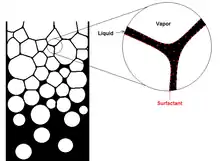 تعمل الفاعلات بالسطح على تقليل التوتر السطحي للسائل أو الغاز عن طريق امتصاص السطح الفاصل بين الغاز والسائل، كما تقلل التوتر الوجهي عن طريق امتصاص السطح الفاصل سائل وسائل (كالزيت والماء مثلاً). يمكن لكثير من الفاعلات بالسطح أن تشكل تجمعات كبيرة في المحاليل فينقسم الفاعل بالسطح إلى مذيلات وحويصلات. تركيز الفاعل بالسطح الذي تبدأه الذي يكون أولاً عبر المذيلات يسمى بالتركيز المذيلي الحرج، عندما تتكون المذيلات في الماء فان ذيولها تكون في الصميم لتوقف عمل الزيت الاعتيادي، ويبقى رأسها متصلاً مع الماء أيضاً في الوقت نفسه، لكن إذا تجمع عامل الفعالية السطحية في الزيت فان شكله يكون معاكساً حيث أن الرأس يكون في الصميم والذيل متصلاً مع الزيت.