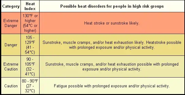 مؤشر الحرارة بالإنجليزية Heat index هو مؤشر يجمع بين درجة حرارة الهواء والرطوبة النسبية في محاولة لتحديد درجة الحرارة التي يشعر بها الإنسان حقاً - مقدار الحرارة التي يشعر بها.[1][2][3] على سبيل المثال، عندما تكون درجة الحرارة 90 درجة فهرنهايت (32 درجة مئوية) مع رطوبة عالية جدا، مؤشر الحرارة يمكن أن يكون حوالي 109 درجة فهرنهايت (43 درجة مئوية). جسم الإنسان يبرد عادة نفسه بواسطة العرق، الذي يتبخر ويحمل الحرارة بعيدا عن الجسم. ومع ذلك، عندما تكون الرطوبة النسبية عالية، يتم خفض معدل التبخر، وبالتالي تتم إزالة الحرارة من الجسم بمعدل أقل، الامر الذي يؤدى إلى الحفاظ على حرارة أكثر مما هي عليه في الهواء الجاف. وقد اتخذت قياسات استنادا إلى تشعر بالحرارة عند درجة حرارة معينة ورطوبة نسبية معينة أعلى مؤشر حرارة في العالم كان في الظهران في 08/07/2003 حيث كانت درجة الحرارة 107 درجة فهرنهايت (42 درجة مئوية ) و الرطوبة 65% مما أدى إلى مؤشر حرارة بلغ 178 درجة فهرنهايت (81 درجة مئوية ) لكن تاريخ 01/09/2015 مدينة كلباء حيث كانت درجة الحرارة 105 فهرنهايت (41 درجة مئوية ) و الرطوبة 81% مما تسبب في مؤشر حرارة بلغ 193 درجة فهرنهايت (89 درجة مئوية). Enter:Heat Index Chart.jpg