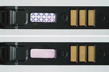 مؤشر رطوبة في بطارية ليثيوم-أيون خاصة بهاتف نقال.
