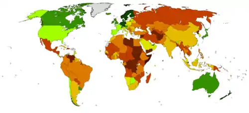 | # | البلد | الدرجة | # | البلد | الدرجة |