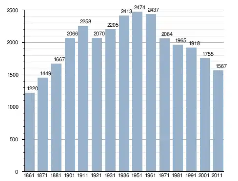 في سنة 1861 بلغ عدد السكان 1٬220 نسمة، وتطور العدد ليصل في سنة 2011 لـ 1٬567 نسمة.