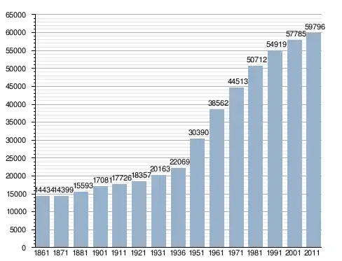 في سنة 1861 بلغ عدد السكان 14٬434 نسمة، وتطور العدد ليصل في سنة 2011 لـ 59٬796 نسمة.
