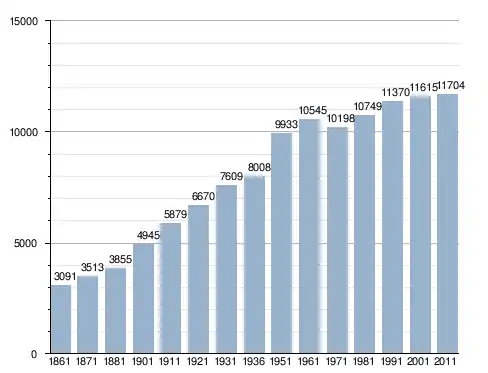 في سنة 1861 بلغ عدد السكان 3٬091 نسمة، وتطور العدد ليصل في سنة 2011 لـ 11٬704 نسمة.