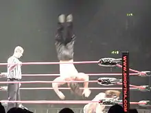 an elbow smash from the second rope
