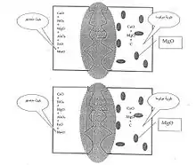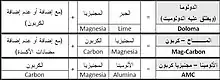 وعندما يتم كلسنة (تسخين) هذه الكربونات تتحلل حرارياً، وتتحول إلى ما يسمى بالدولوما ويأخذ الرمز CaO.MgO
