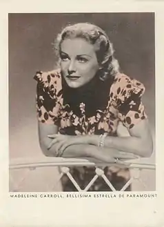 مادلين كارول (بالإنجليزية: Madeleine Carroll) هي ممثلة أمريكية وبريطانية، ولدت في 26 فبراير 1906 بويست بروميتش في المملكة المتحدة، وتوفيت في 2 أكتوبر 1987 بمربلة في إسبانيا بسبب سرطان البنكرياس.[9][9][10] من الجوائز التي نالتها وسام جوقة الشرف.