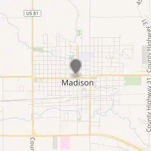 - "صفحة ماديسون (داكوتا الجنوبية) في GeoNames ID". GeoNames ID. اطلع عليه بتاريخ 6 مارس 2021. الوسيط