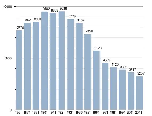 في سنة 1861 بلغ عدد السكان 7٬676 نسمة، وتطور العدد ليصل في سنة 2011 لـ 3٬257 نسمة.