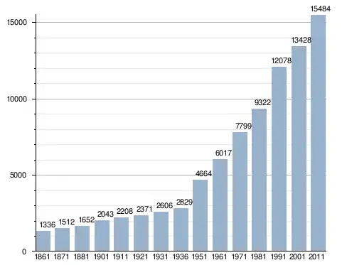 في سنة 1861 بلغ عدد السكان 1٬336 نسمة، وتطور العدد ليصل في سنة 2011 لـ 15٬484 نسمة.